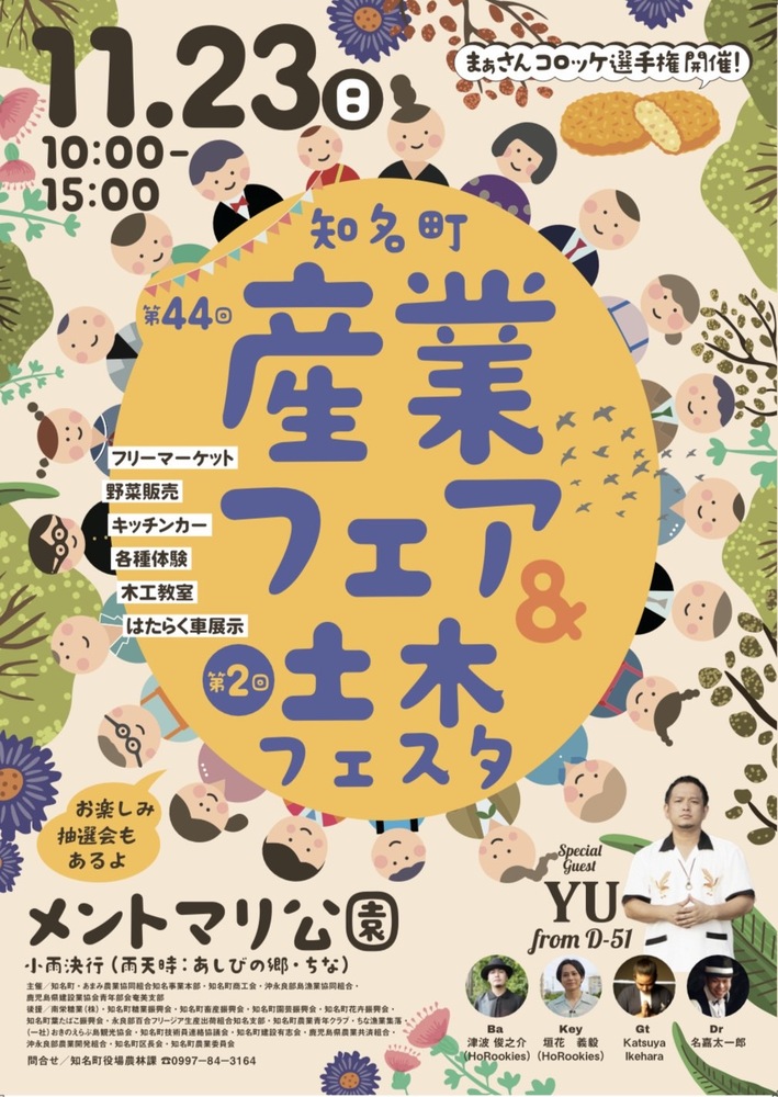 【サポートメンバー】第44回知名町産業フェア&第2回土木フェスタ LIVE 2025/11/23(日) 10:00 - メントマリ公園 地図を表示 D-51 沖永良部 HoRookies 沖永良部島にて開催される第44回知名町産業フェア&第2回土木フェスタにて D-51 YUさんのサポートーメンバとして義毅と津波が参加します! ぜひお待ちしております! URLをコピーする 報告する